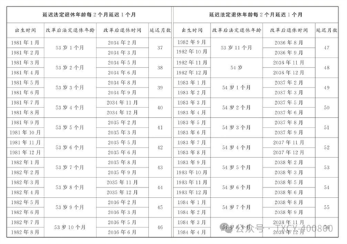 3.原法定退休年齡五十周歲的女職工延遲法定退休年齡對照表